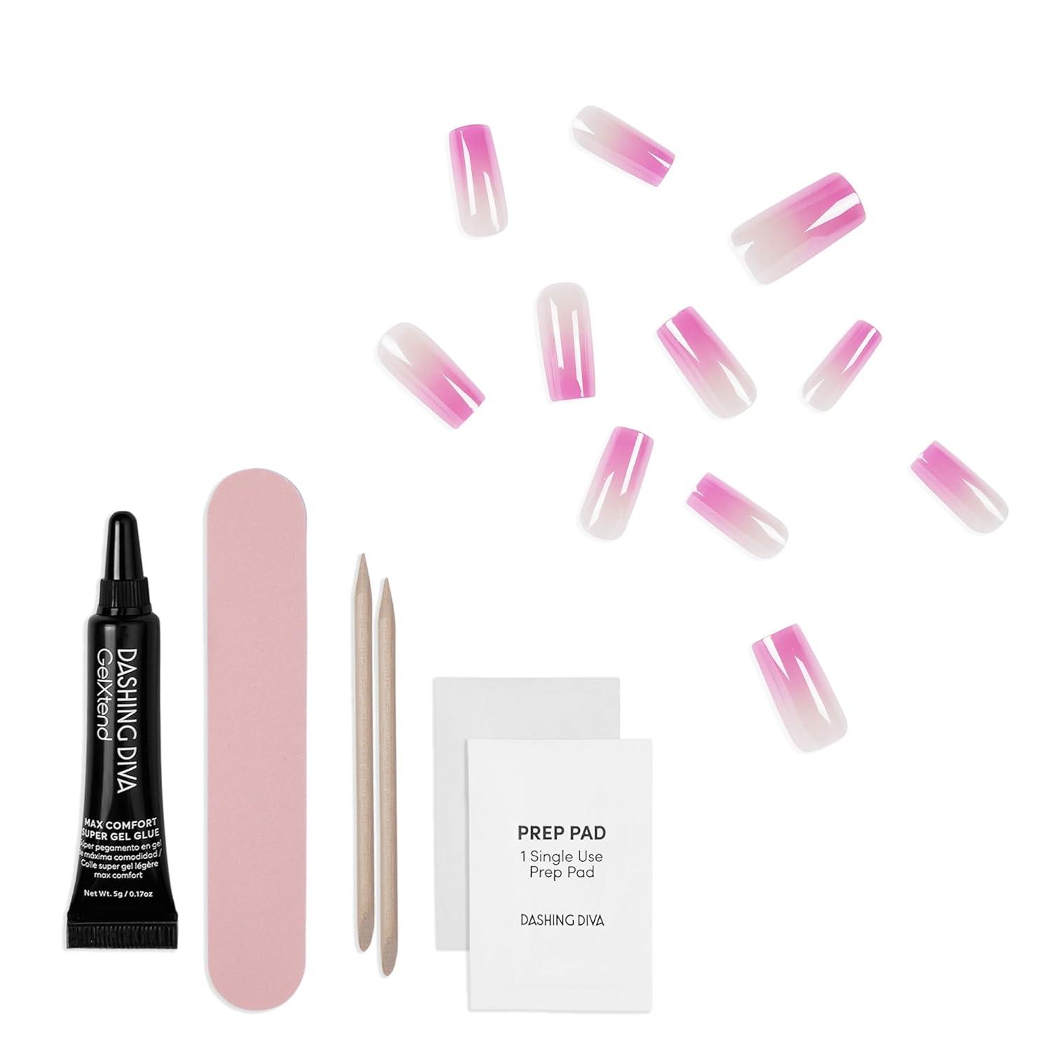 Dashing Diva GelXtend Nail Set - Airy Fairy - Shimmer Ombre Nails - Lasts Up to 14 Days - Gel Nails - No-Soak, Easy Removal(Pink)