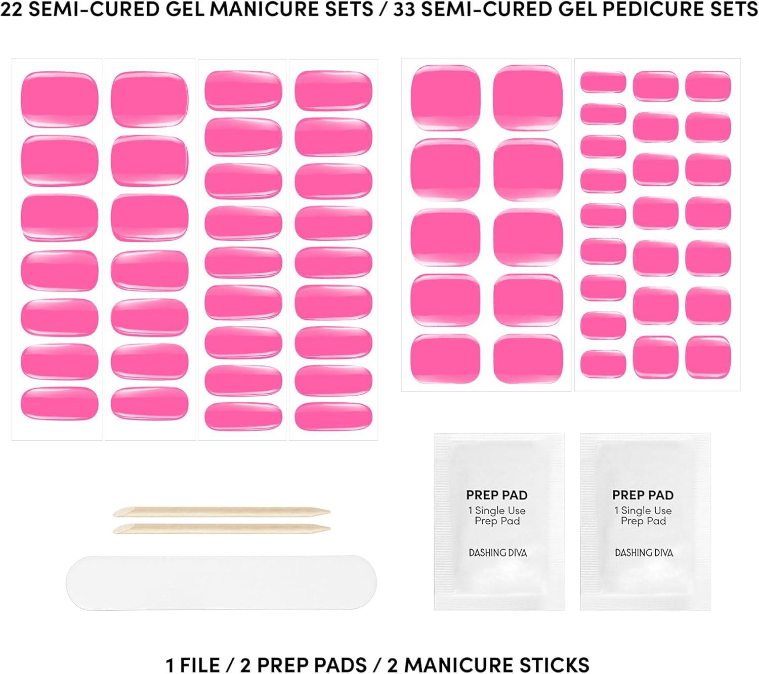 Dashing Diva Glaze Mani Pedi Kit​ – The Bitesize Blue Glaze – Comes with LED Nail Lamp – Long Lasting, Semicured Gel Nail Strips for Toes & Hands(Neon Pink)