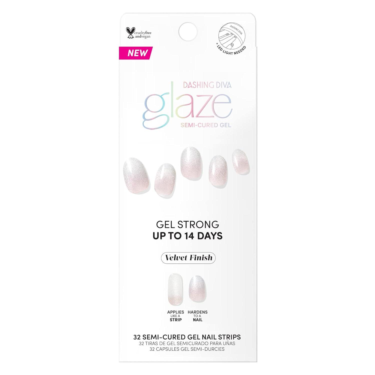 LONG LASTING SEMICURED GEL STRIPS: GLAZE easy-to-apply gel nail strips cure under the light of our LED mini lamp in just 45 seconds and deliver full-cover, sculpted perfection. Semi-cure your way to maximum shine and real salon gel strength for up to 14 days