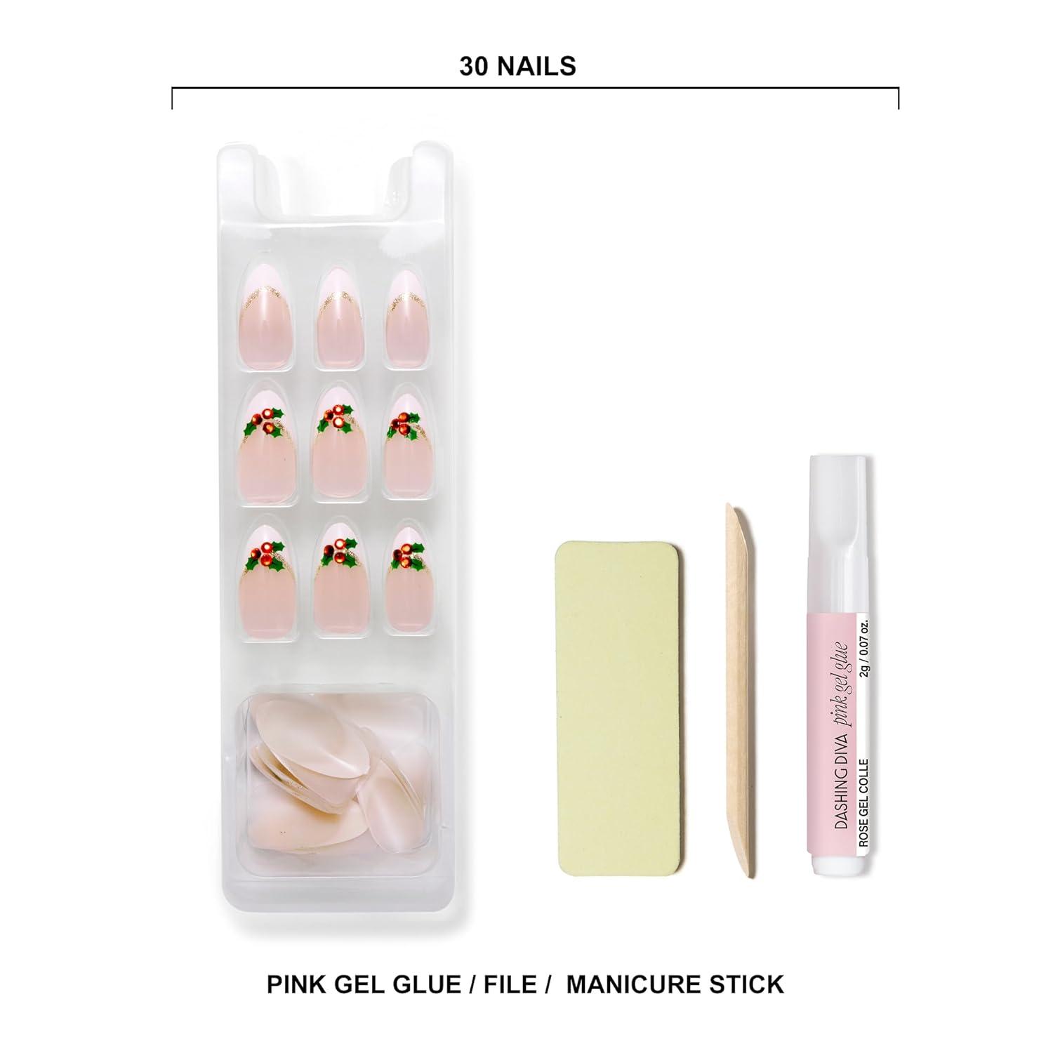 Dashing Diva Holiday Nailbliss Gel Manicure Set – Holly Dolly – Salon Quality, Easy to Apply and Chip Resistant – Contains 30 Medium Length, Almond Shaped, Glue On Gel Nails(Holly Dolly)