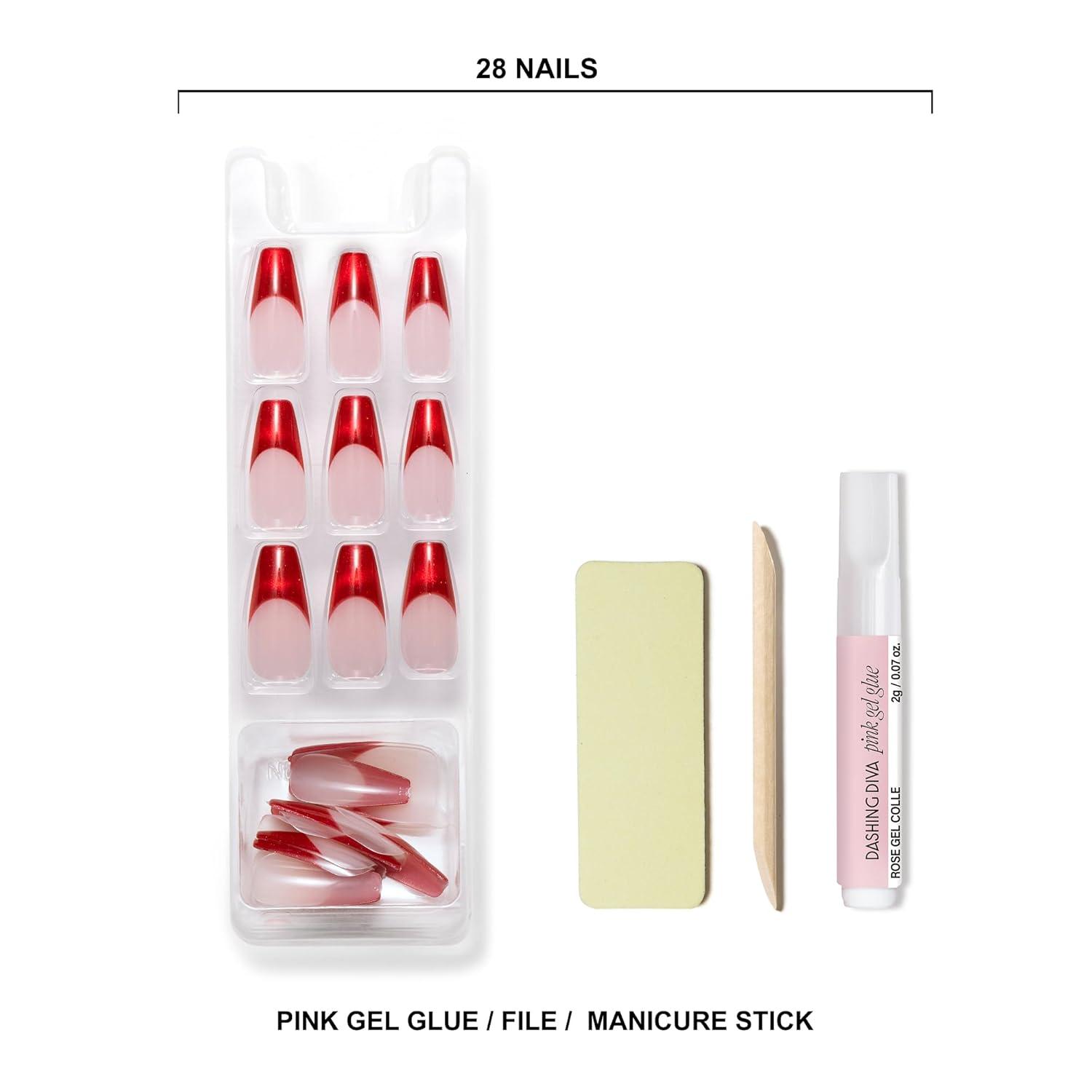 4-Piece Manicure Set: 30 press-on gel nails, 1 gel glue, 1 nail file, and 1 manicure stick